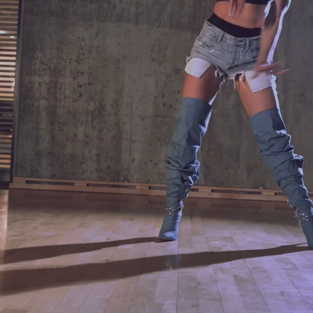 Closed Toe Baggy Chain Thigh High Boots