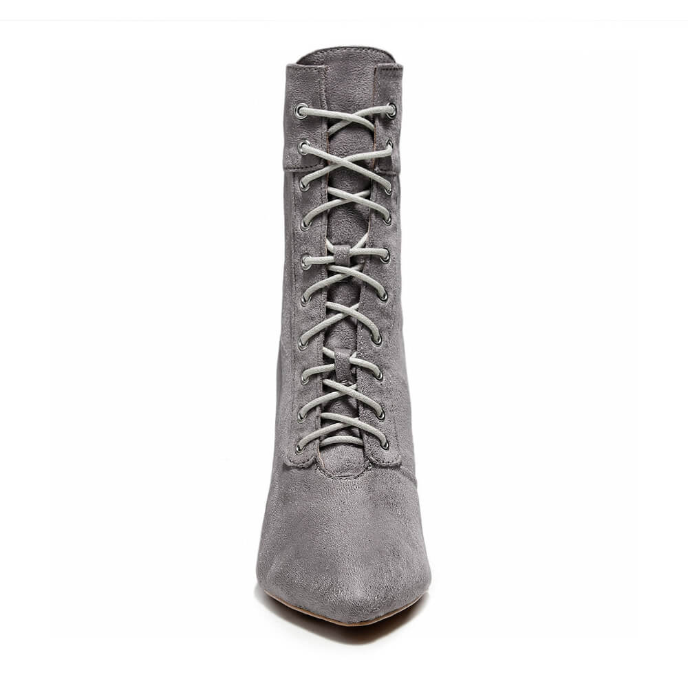 Step out in style and comfort with Khadija, the sleek and vegan suede pointed toe ankle boot. Perfect for everyday wear or dance classes with adjustable laces and a zipper on the back for easy on and off. Featuring Memory Foam padding and a non-slip lining, your feet will love you all day long.