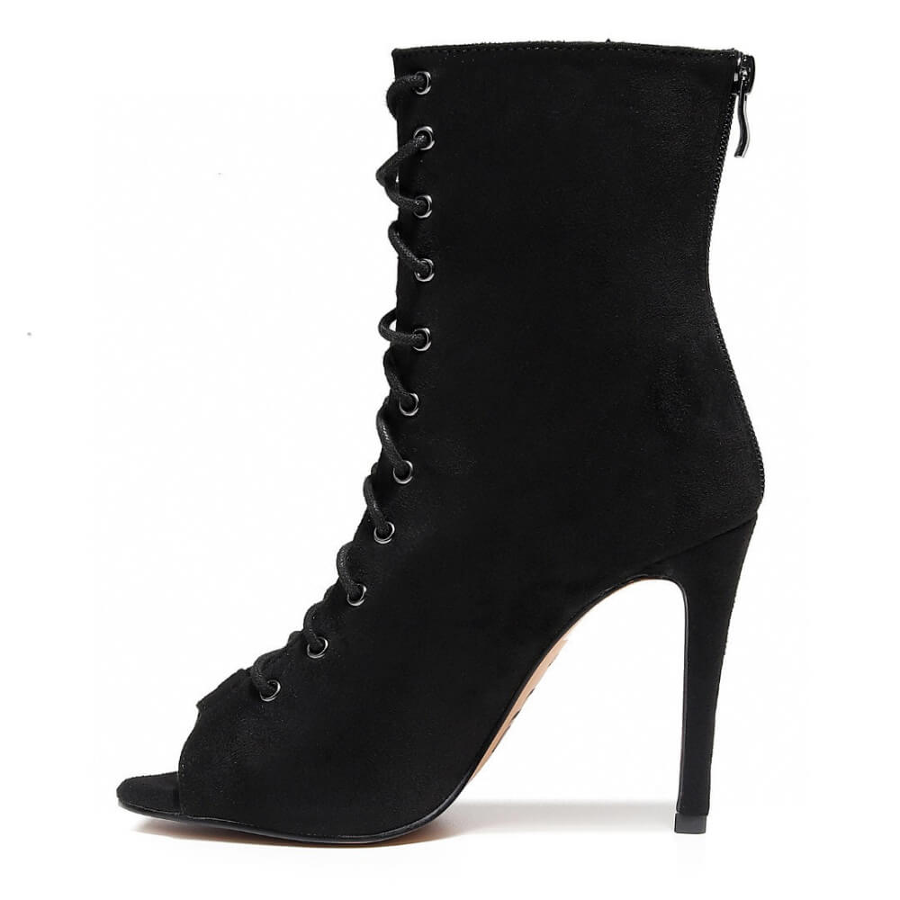 Open Toe Lace Up Peek-A-Boo Ankle Boots